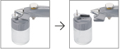 ● エアブラシの噴射口下部にローションボトルが設置された「吸い上げ方式」。
